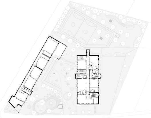 Le projet consiste en la réhabilitation des deux bâtiments existants et d'une extension d'environ 315 m2 qui s'implante dans la continuité de l'école maternelle. L'extension est composée de deux volumes à deux pans, dont un suit la morphologie du bâtiment existant. Le dernier volume bâti est composé d'un espace intérieur et d'un préau de 73 m2 environ en RDC et d'un niveau inférieur. L' aménagement paysager intègre l'extension à l'existant mais aussi permet de nouveaux usages et accès entre les cours hautes et basses.