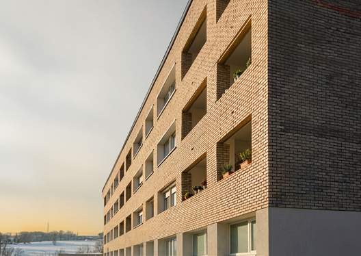 Le parti pris pour cette réhabilitation complète est de créer des variations dans le traitement des finitions sur la base commune d’une isolation thermique extérieure. Les finitions sont briquette type Briquette Bazia des Ent WIENERBERGER (brun) soit enduit beige clair, soit enduit SILITETTEF